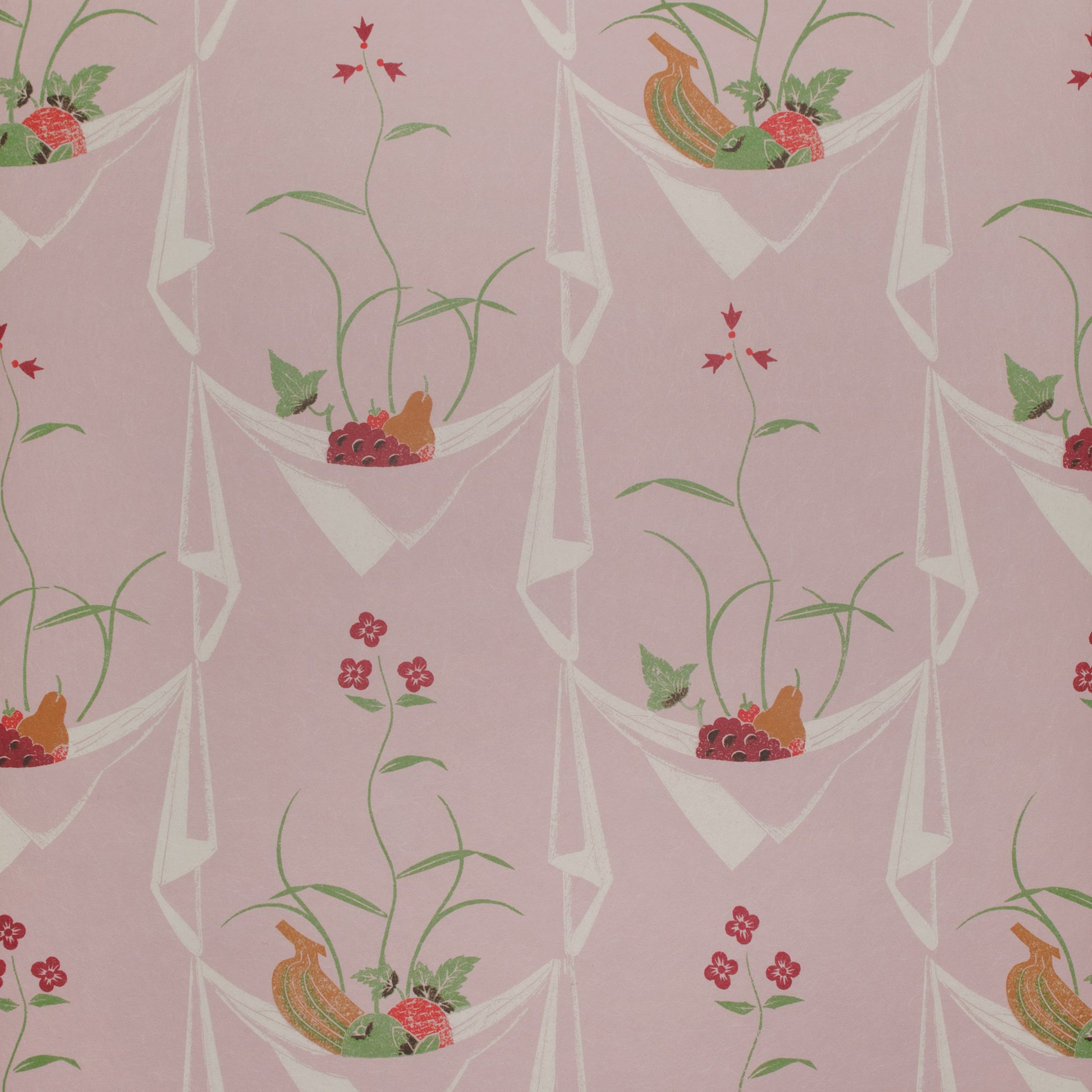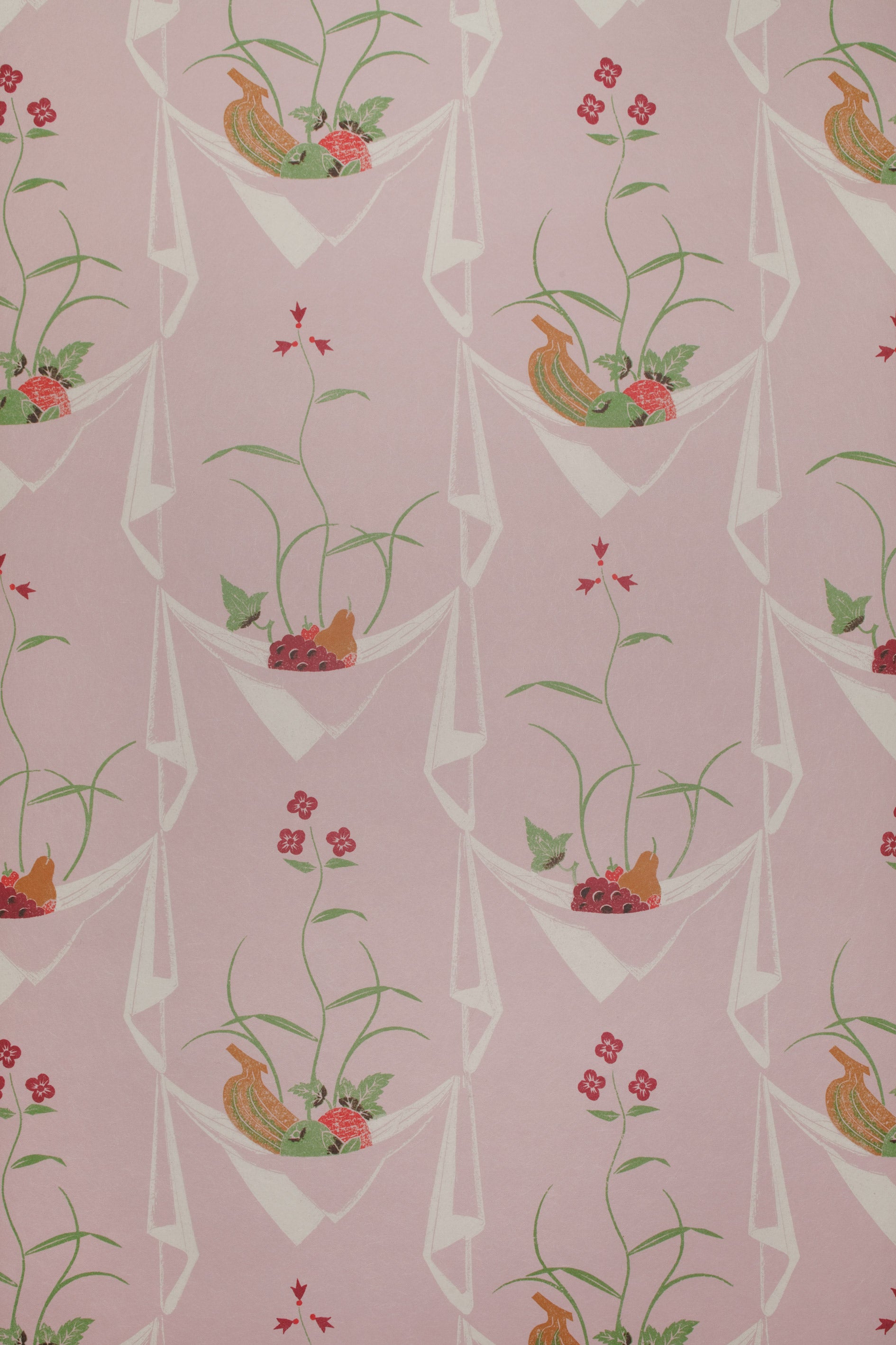From an original design by Edward Bawden, Napkin/Fruit wallpaper is available to order from Brick House Design. The wallpaper is available in its original colouration as well as a small selection of sensitively created new colourways. Our Confetti/ White colourway , matches the ground to Confetti and the Napkins to Silent White, both colours from Little Greene paint colour cards.