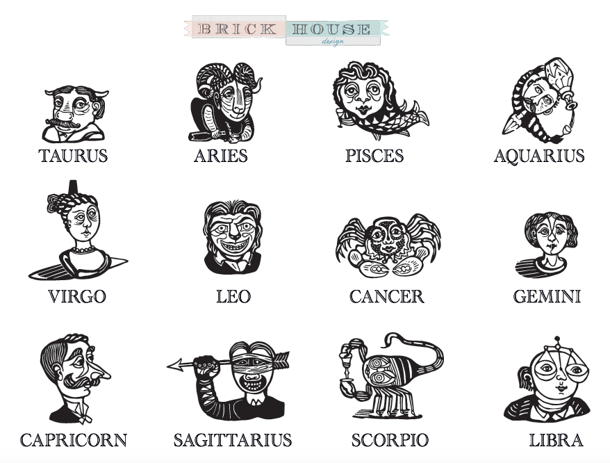 Edward Bawden designed a series of horoscope characters for coasters for Gilbey's Gin in 1954. In typical Bawden fashion he designed them to look as though they had all been enjoying the gin!