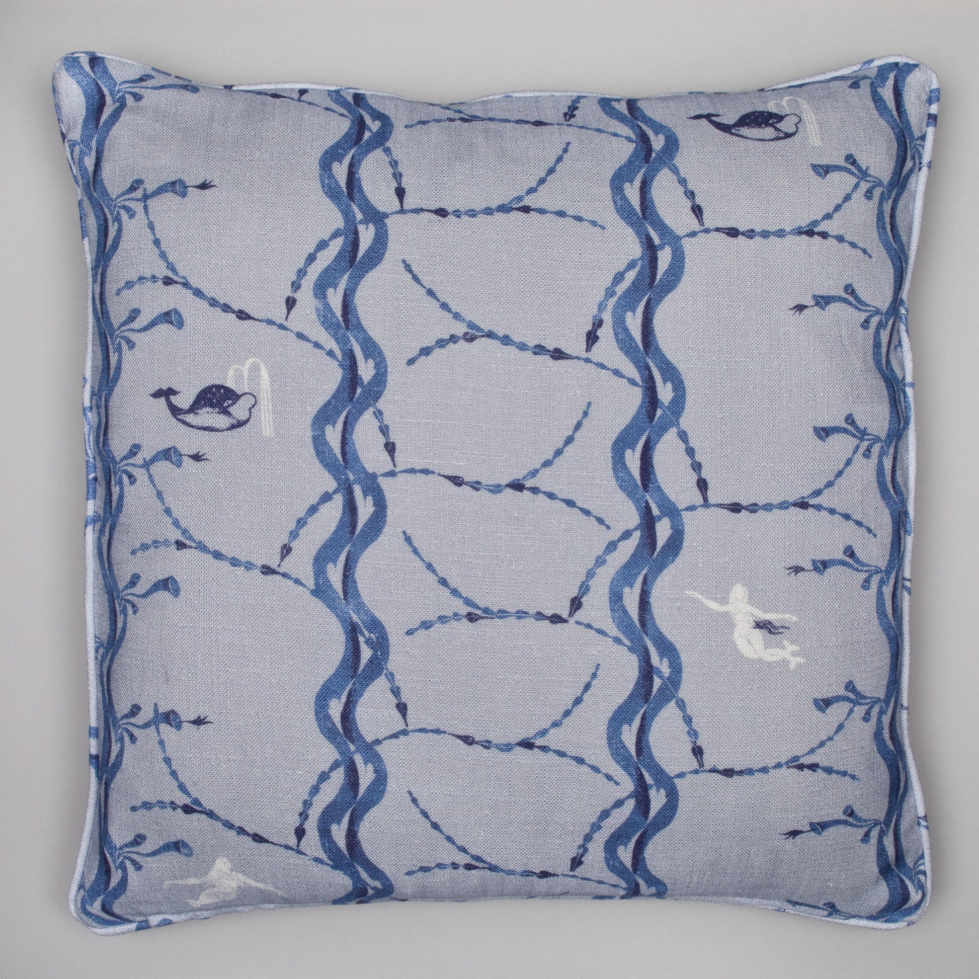Brick House Design Mermaid and Whale print cushions are available in linen, cotton and velvet. Linen is pictured.