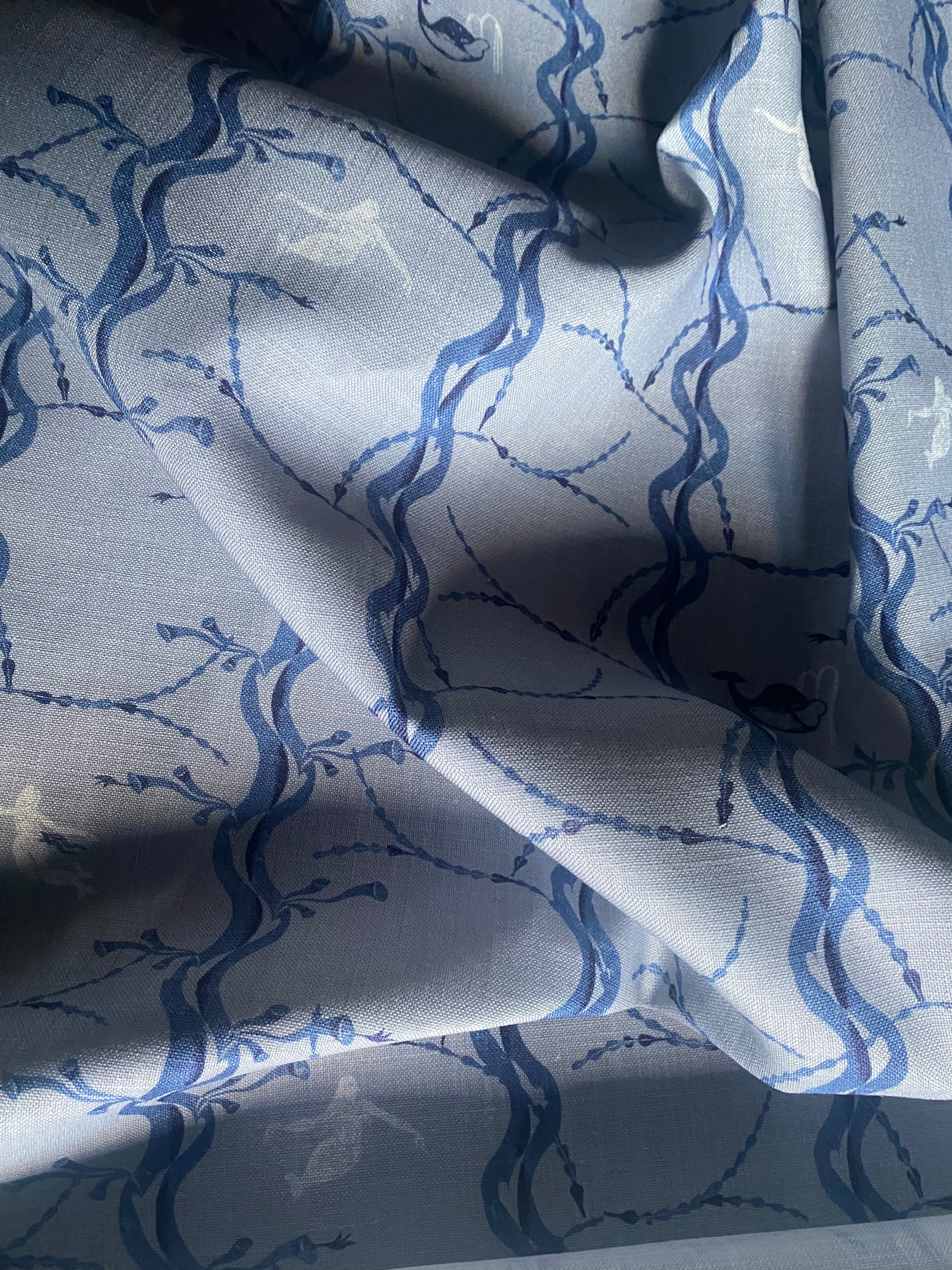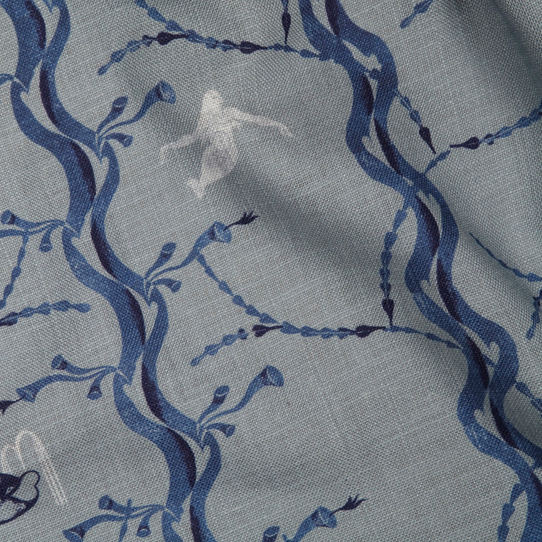From an original design by Edward Bawden, Mermaid and Whale print fabric is available to order from Brick House Design. The fabric is available in its original colouration as well as a small selection of sensitively created new colourways. In addition the print is available on a variety of bases from Linen, to Cotton and Velvet