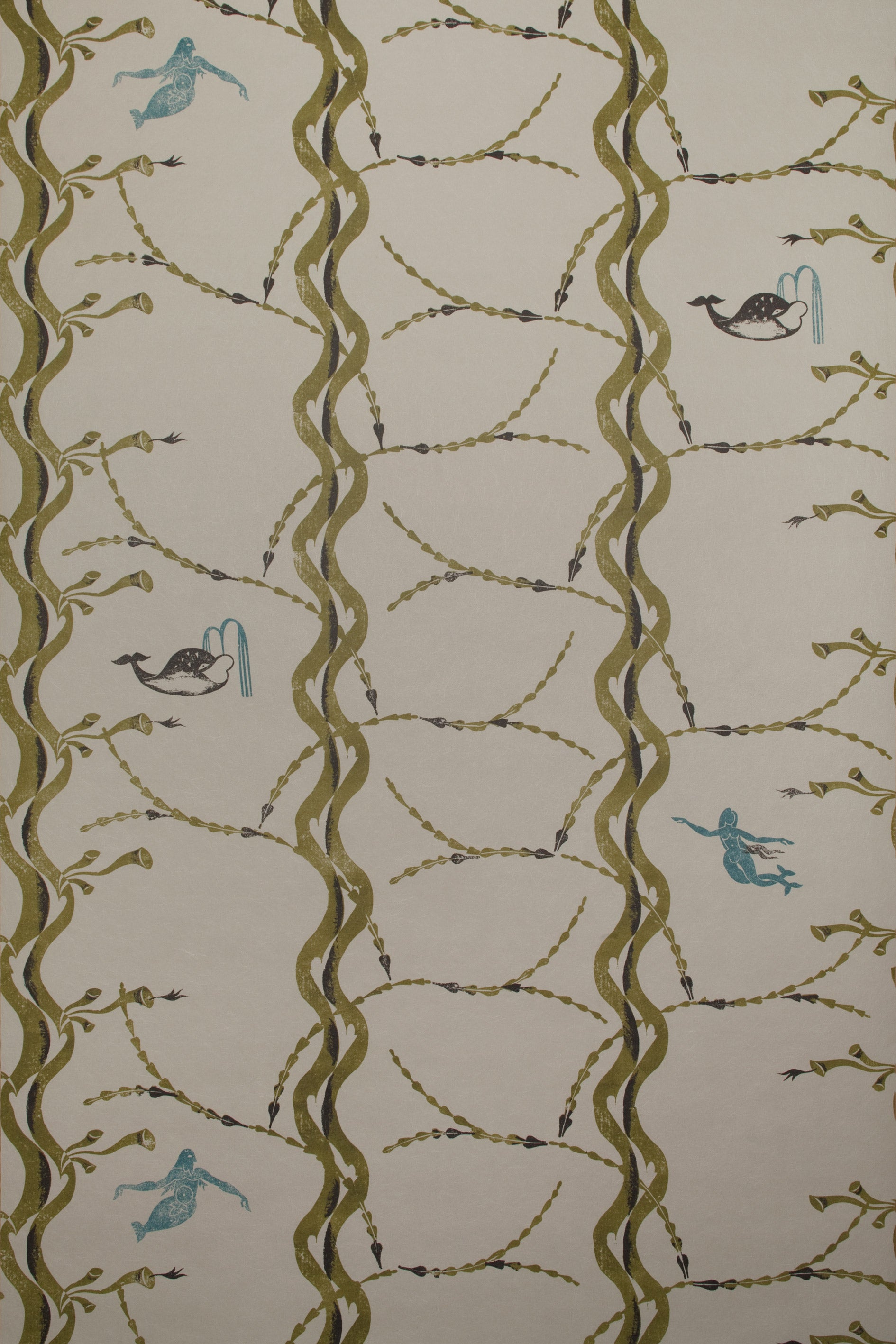 From an original design by Edward Bawden, Mermaid and Whale wallpaper is available to order from Brick House Design. The wallpaper is available in its original colouration as well as a small selection of sensitively created new colourways.