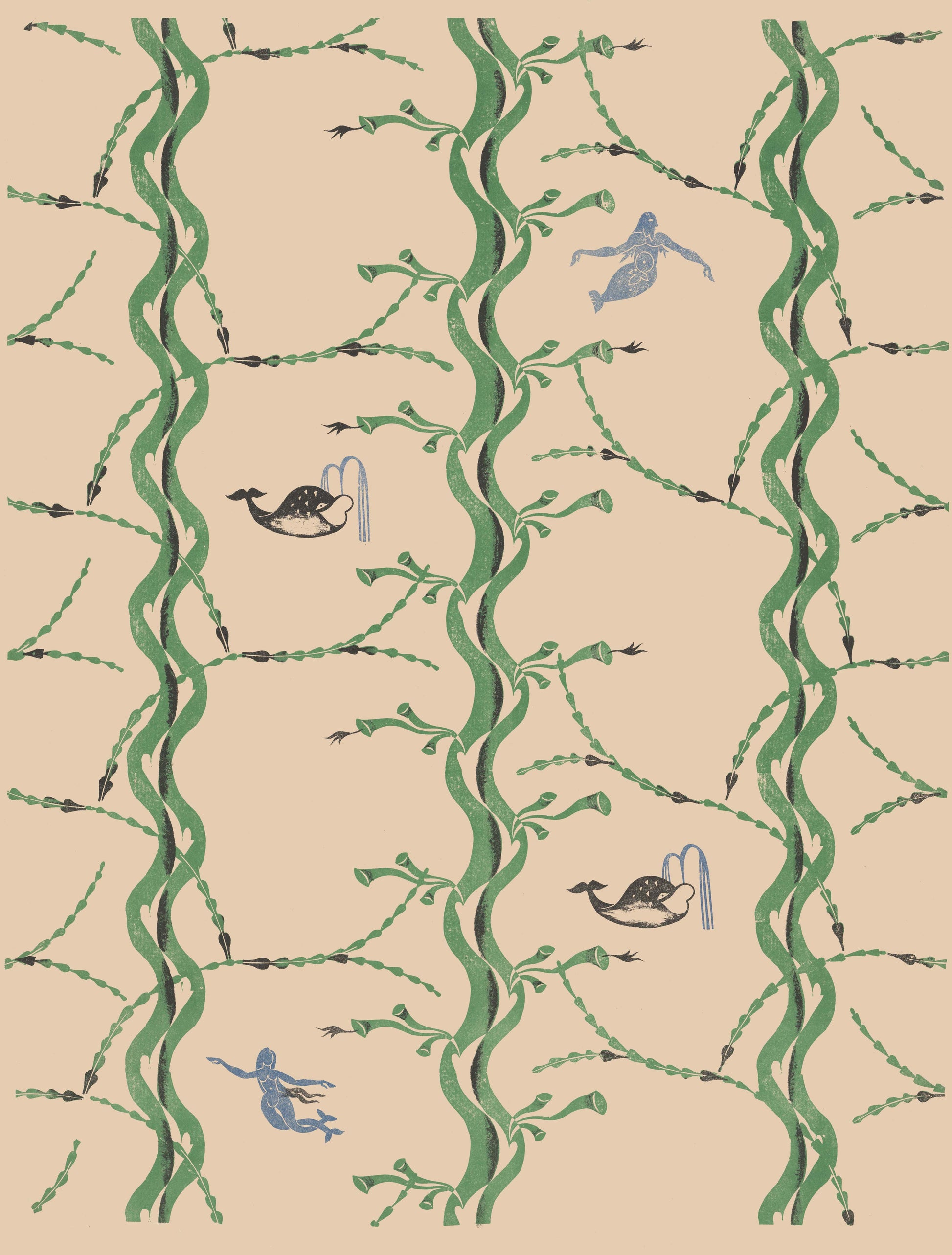 From an original design by Edward Bawden, Mermaid and Whale wallpaper is available to order from Brick House Design. The wallpaper is available in its original colouration as well as a small selection of sensitively created new colourways.