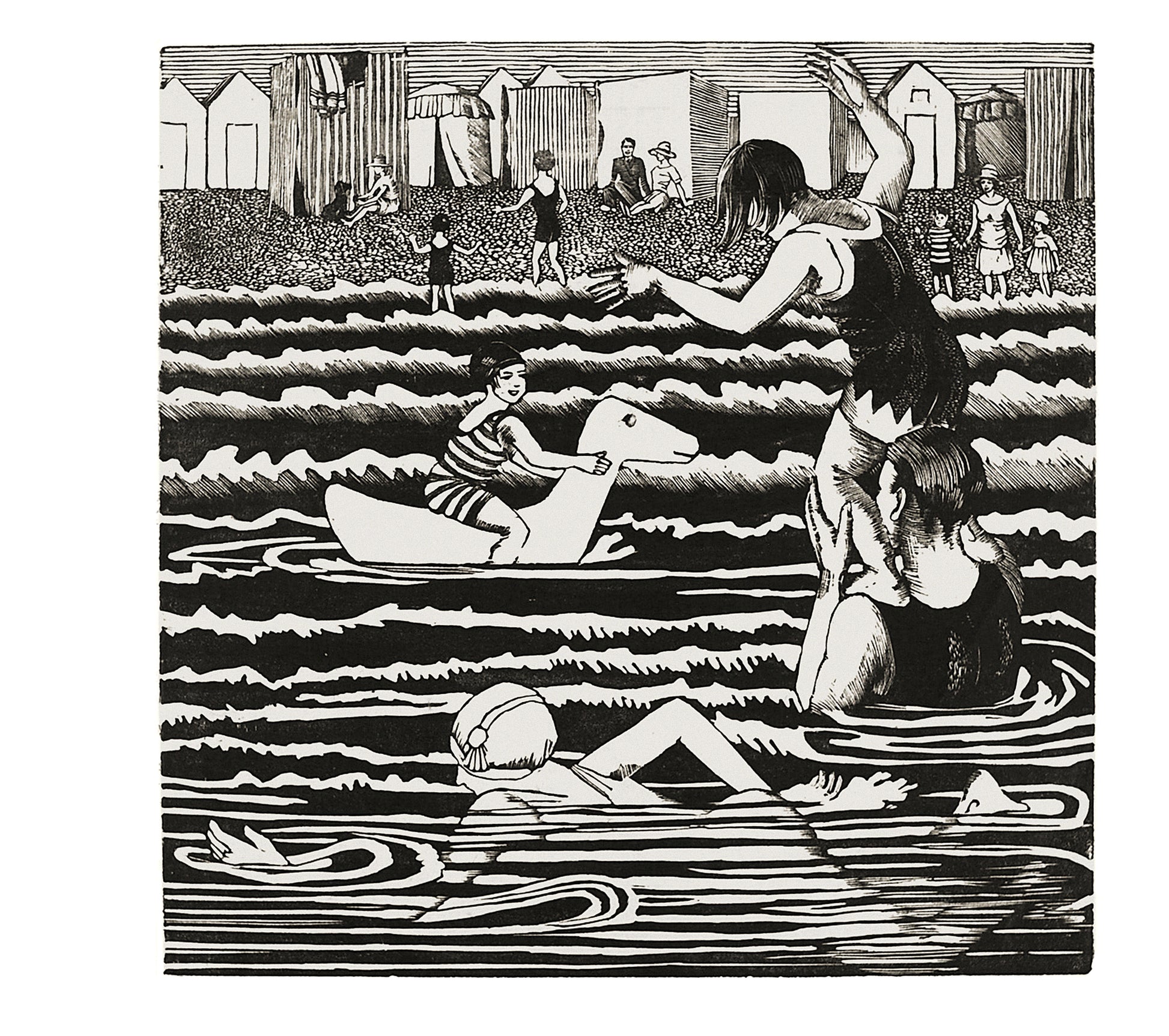 The Sea Swimmer Mug is a part of Brick House Design's ceramics collection based on the designs of Tirza Garwood. The Design is a detail taken from a woodcut create by Tirza in 1929 called 'Summer'. An image of the original woodcut can be seen alongside the product shots.