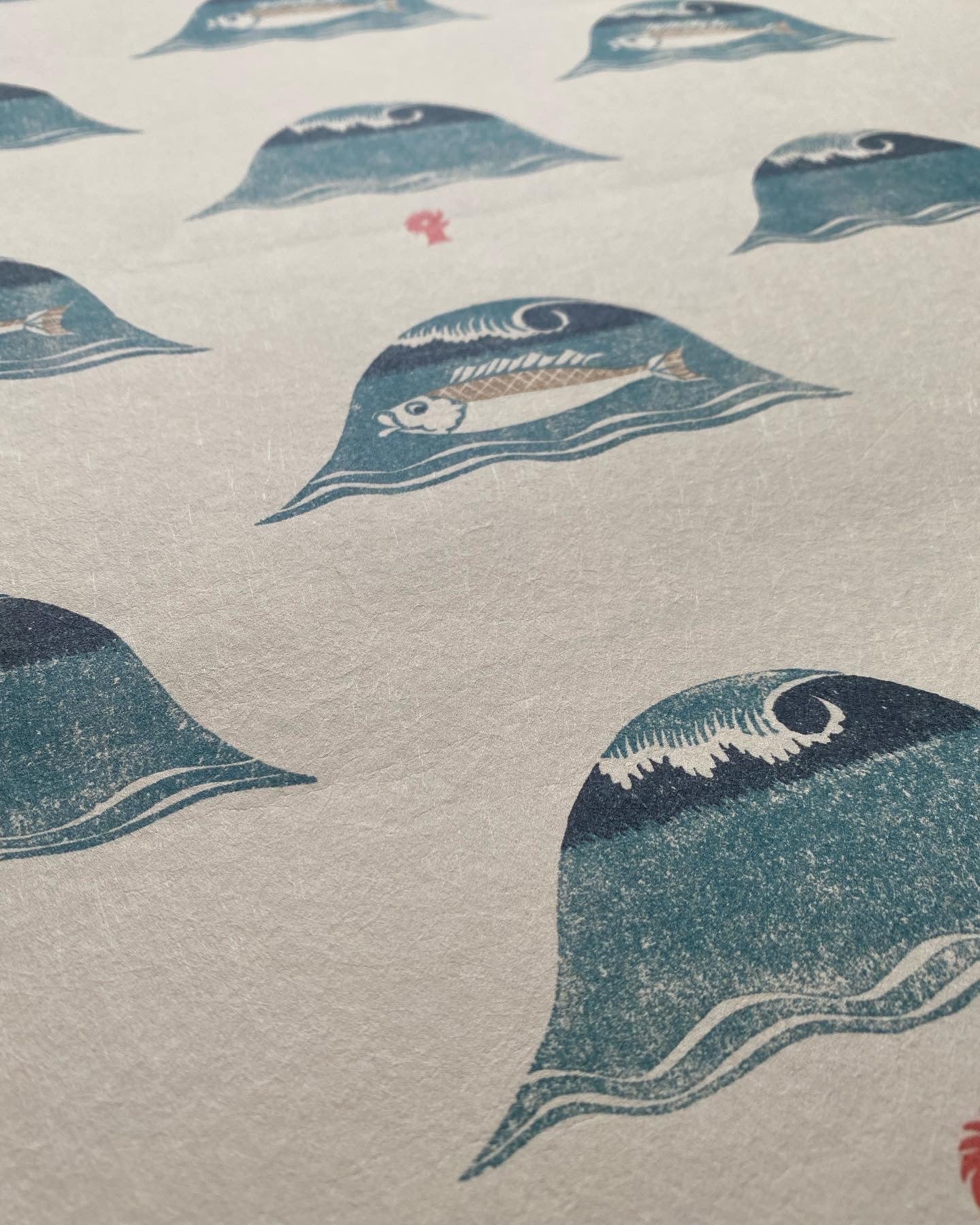 Waves and Fishes is an original design created by Edward Bawden in 1929. Brick House Design have created their version of this print from an original piece of hand printed wallpaper.